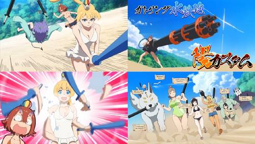 釈放を賭けたビーチチャンバラ。2対1のハンデキャップマッチですが、所詮は社内レクリエーションの優勝者。国王軍第三騎士団騎士団長の敵ではなく、陰鬼瞬殺。